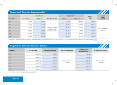 (9 UhrAbo, KlimaAbo, CityLifeAbo und RegioLifeAbo, FunAbo, 60plusAbo, SilberAbo, LandEiAbo, FahrradAbo, 1. Klasse Abo Aufpreis, NRWupgradeFahrrad und NRWupgrade1.Klasse)