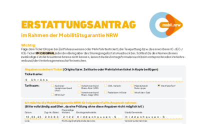 Wenn Sie die Mobilitätsgarantie NRW in Anspruch nehmen möchten, treten Sie zunächst in Vorleistung. In unserer Schritt-für-Schritt-Anleitung erklären wir Ihnen, wie Sie die Kosten zurückerhalten: