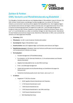 Laden Sie sich alle Infos zum Pressetermin kompakt in unserer Pressemappe herunter. Oder downloaden Sie gezielt unseren Pressetext oder die Zahlen und Fakten zur OWL Verkehr.